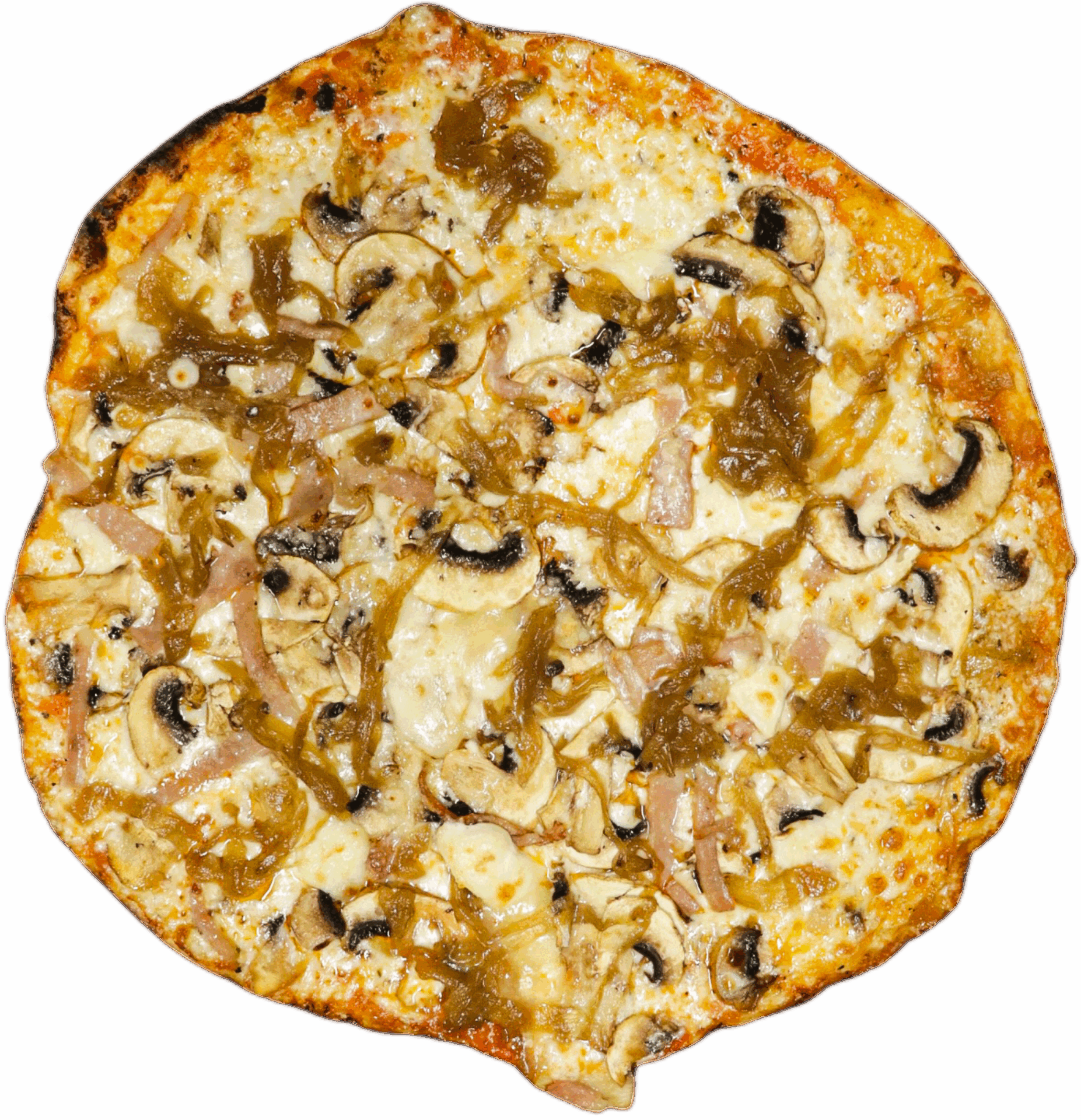 Bacó Fregit, Xampinyons, formatge de cabra, parmesà, ceba caramellitzada